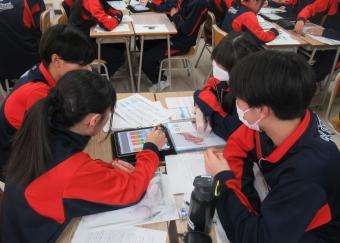 当日は、当出張所の職員が講師となり、国の財政や税金について説明したほか、生徒及び児童それぞれが国の予算編成をシミュレーションし、グループに分かれ意見交換しました。
