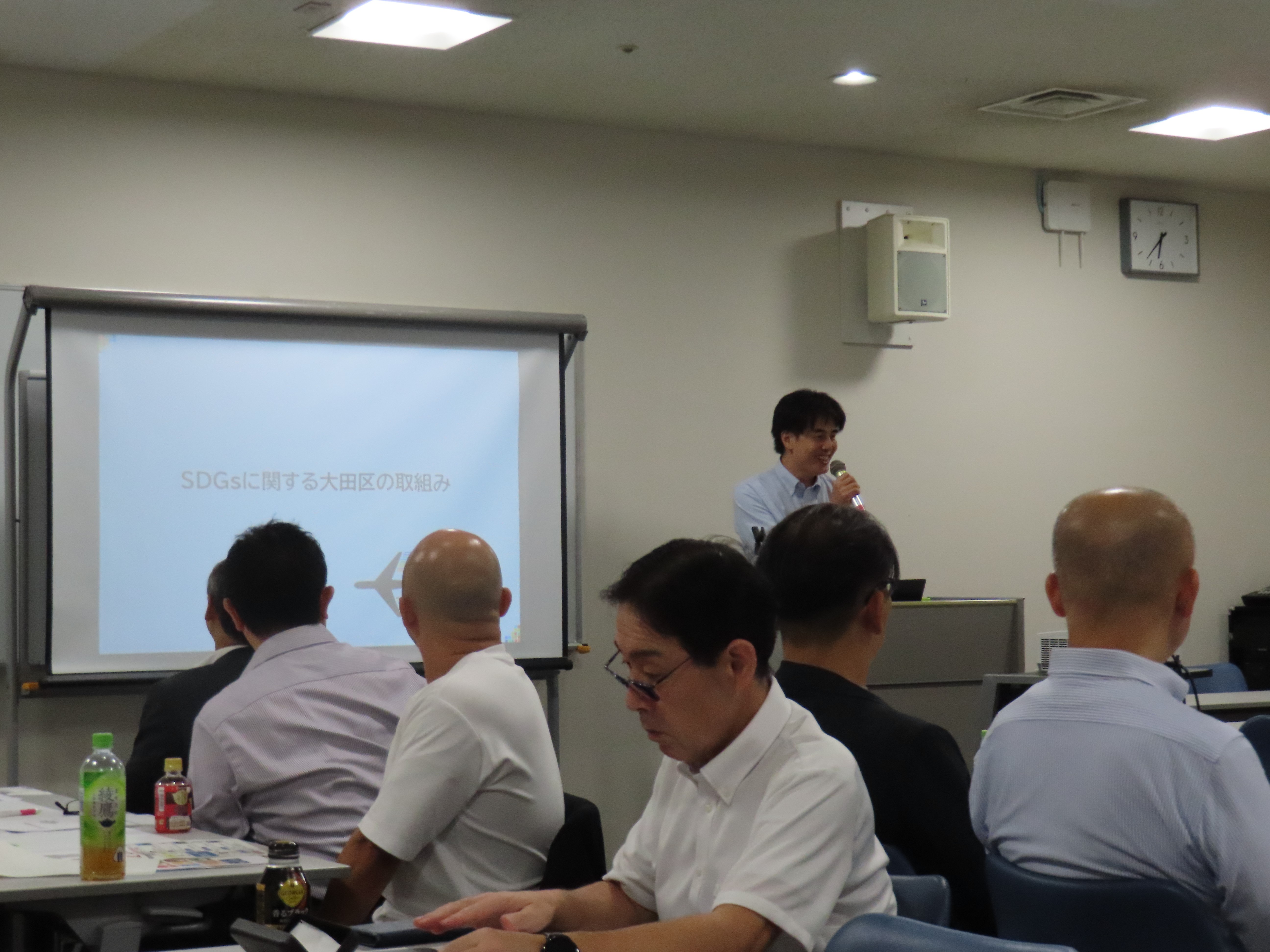 当日は大田区企画経営部でSDGsの推進を担当している佐藤氏より、SDGsの概要や中小企業がSDGsに取り組む意義、大田区でのSDGsの取り組みについて講演いただきました。講演終了後に行われたグループワークでは経営者の立場から、自社で取り組んでいる目標、今後達成できそうな目標について意見交換を行い、SDGsへの理解を深めました。